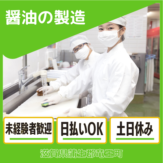 給与詳細 月収例 270,000円 日給例 11,200円 勤務地 滋賀県蒲生郡竜王町 仕事内容 【醤油の製造(袋詰め・梱包など)】