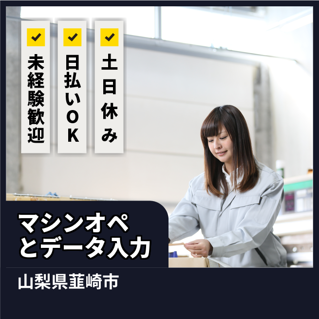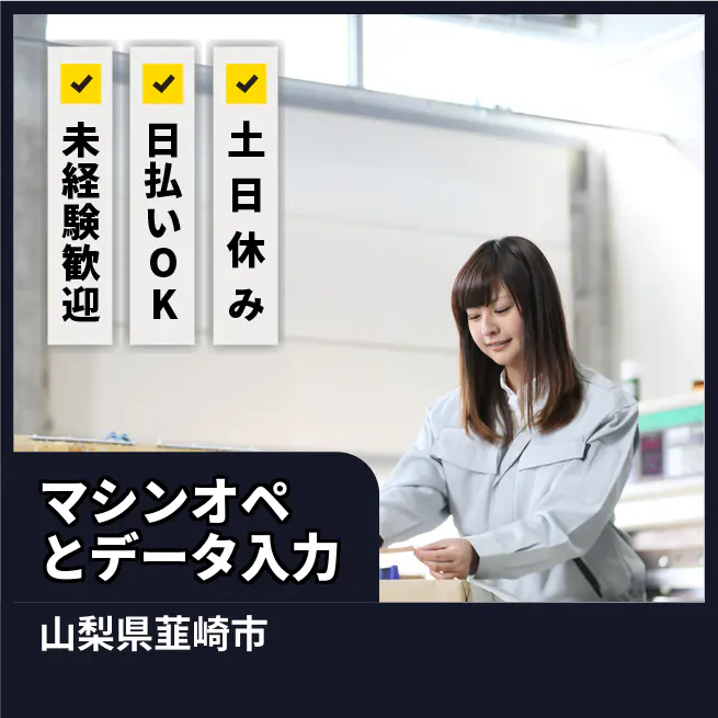 ◆日払い・仮払いOK(アプリでカンタン申請!) 交通費 支給あり 応募の流れ 本ページ内<応募する>ボタンより、必要項目をご入力の上、ご応募ください。 勤務地 【勤務地】山梨県韮崎市- 勤務時間 【勤務地】8:30~17:20(休憩50分+小休憩5分+10分)