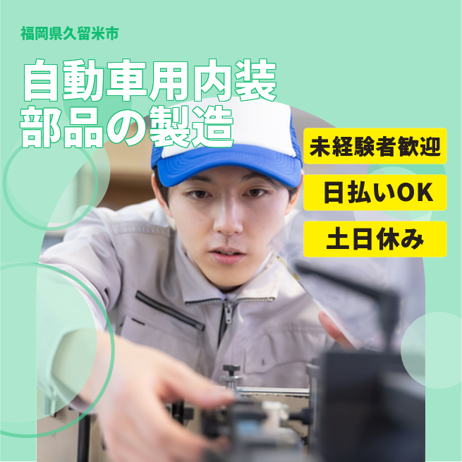 ・受動喫煙対策あり、詳細は面接時にお伝えします。 公開日 2025年10月01日 【自動車用内装部品の製造】