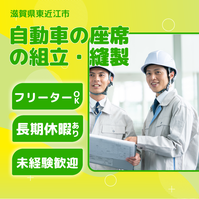 給与詳細 月収例 260,000円 日給例 11,200円 勤務地 滋賀県東近江市 仕事内容 【自動車の座席の組立・縫製】