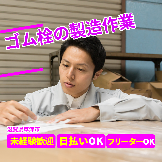 給与詳細 月収例 280,000円 日給例 10,400円 勤務地 滋賀県草津市 仕事内容 【軽いゴム栓の製造】