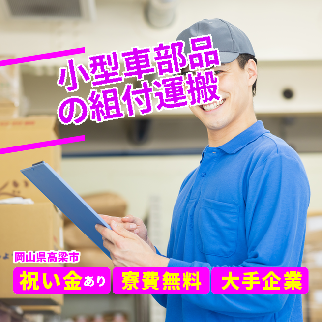 給与詳細 月収例 250,000円 日給例 10,800円 勤務地 岡山県高梁市 仕事内容 【小さい車部品のセット・ピッキング】