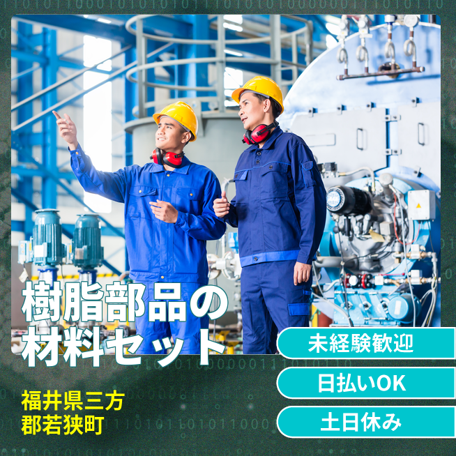 ◆日払い・仮払いOK(アプリでカンタン申請!) 交通費 支給あり 応募の流れ 本ページ内<応募する>ボタンより、必要項目をご入力の上、ご応募ください。 勤務地 【勤務地】福井県三方郡若狭町三方 勤務時間 【勤務地】8:20~17:00(休憩55分)