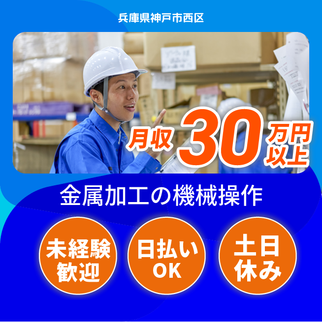 給与詳細 月収例 320,000円 日給例 11,760円 勤務地 兵庫県神戸市北区 仕事内容 【金属部品を加工する機械のボタン操作】