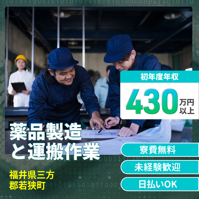 ※通常62,000円の寮費が就業期間中無料! 【薬品の製造・運搬作業】