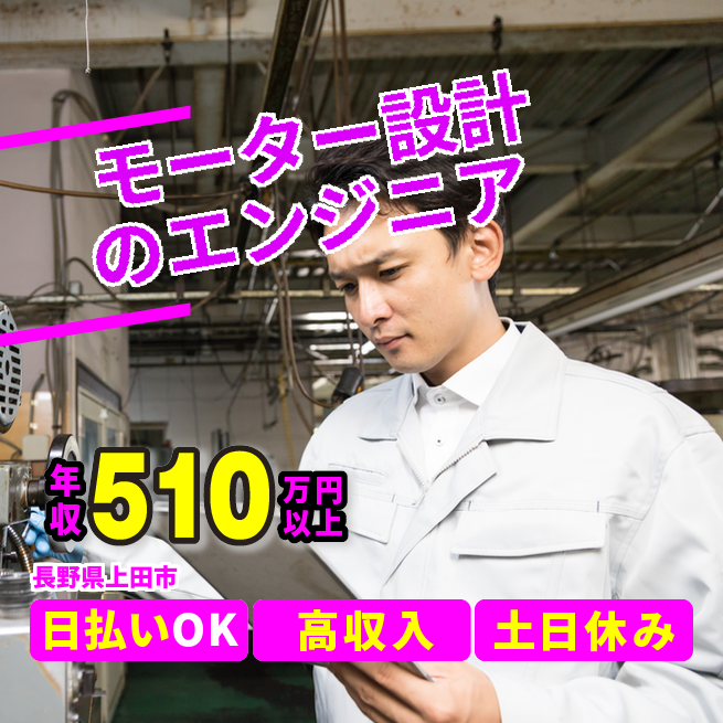 給与詳細 年収例 5,160,000円 月収例 430,000円 勤務地 長野県上田市 仕事内容 【ポンプやモーターを設計する開発型エンジニア】