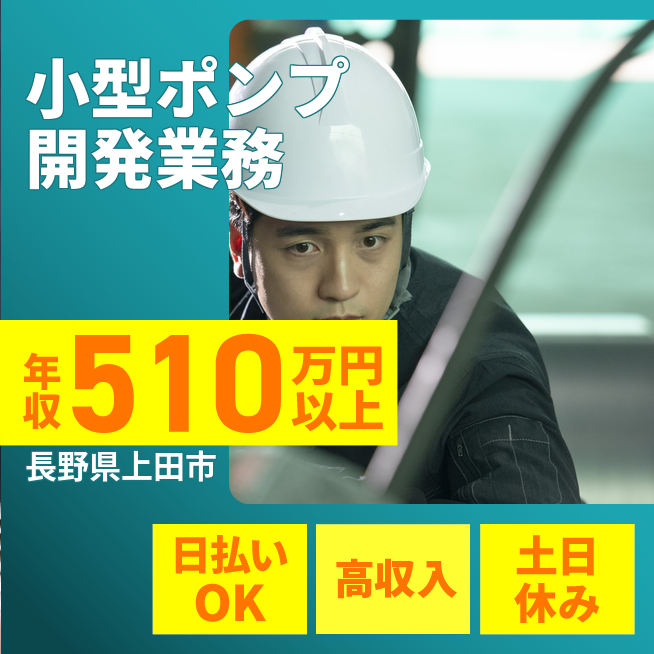 給与詳細 年収例 5,160,000円 月収例 430,000円 勤務地 長野県上田市 仕事内容 【業務内容】ポンプやモーターの設計を行う開発エンジニア