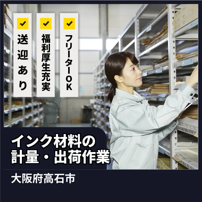 ※通常62,000円の寮費が就業期間中無料! 【インク材料の計量・出荷作業】