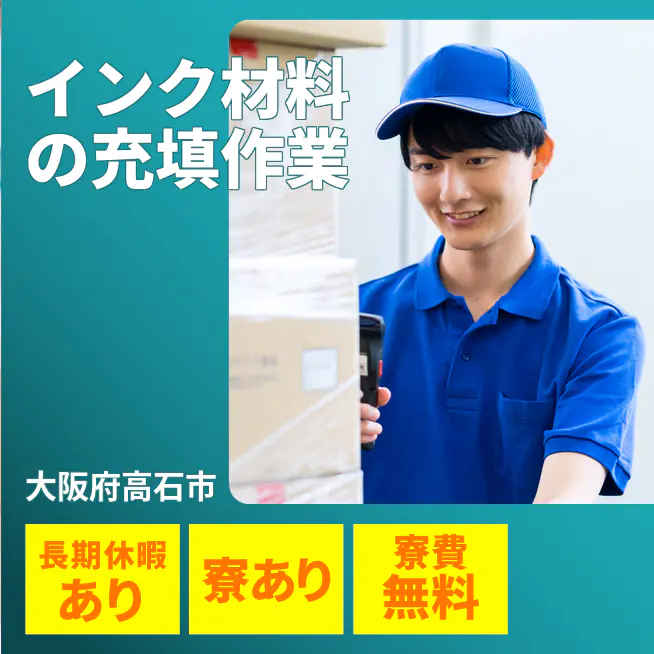 ※通常62,000円の寮費が就業期間中無料! 【インク材料の計量・出荷作業】