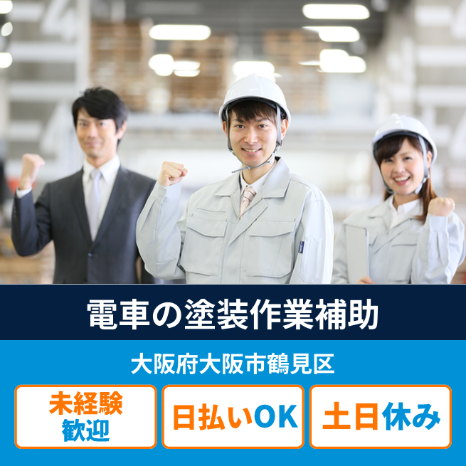 電車好きにはたまらないお仕事が出ました! 各ラインの電車をキレイに仕上げる補助作業で、いつも使っている電車を裏側から支えるお仕事です。基本的には社員さんの補助作業なので未経験の方も大歓迎です!