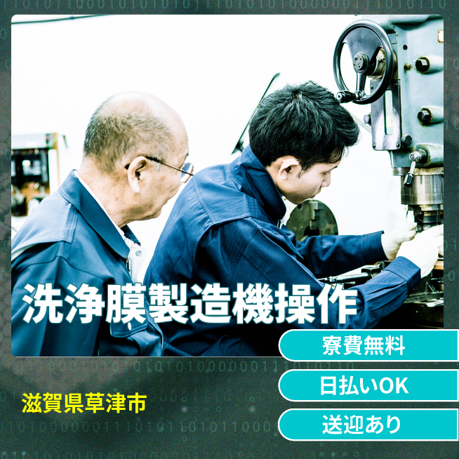 ※通常62,000円の寮費が就業期間中無料! 【洗浄膜フィルターを作る機械操作・材料運搬】