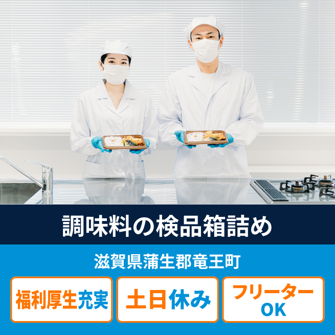 給与詳細 月収例 260,000円 日給例 11,200円 勤務地 滋賀県蒲生郡竜王町 仕事内容 【小袋タレや醤油の検品・箱詰め】