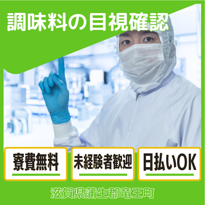 給与詳細 月収例 260,000円 日給例 11,200円 勤務地 滋賀県蒲生郡竜王町 仕事内容 【業務内容】調味料の目視検査と箱詰め作業