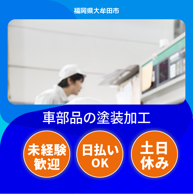 ・受動喫煙対策あり、詳細は面接時にお伝えします。 公開日 2025年10月01日 【車部品の塗装・成型機械の補助】