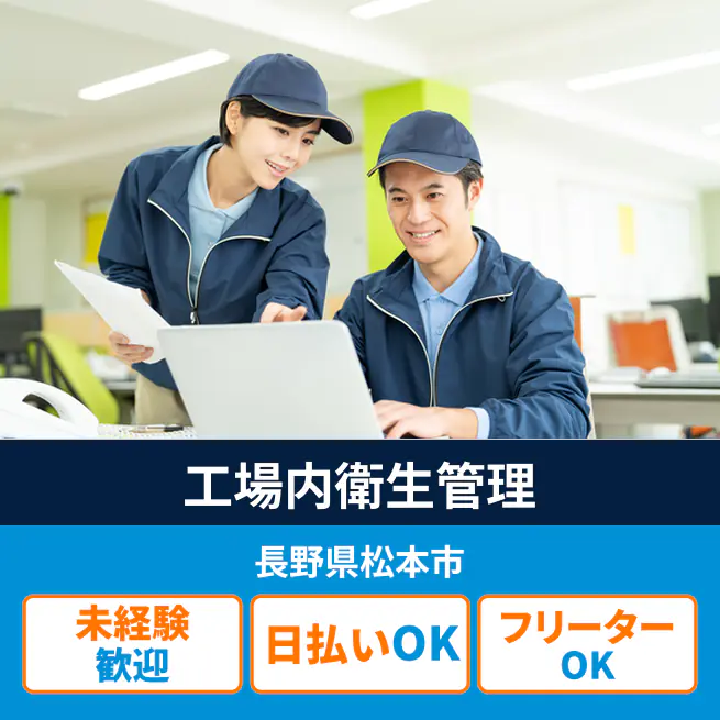 ◆日払い・仮払いOK(アプリでカンタン申請!) 交通費 支給あり 応募の流れ 本ページ内<応募する>ボタンより、必要項目をご入力の上、ご応募ください。 勤務地 【勤務地】長野県松本市渚 勤務時間 【勤務地】8:00~17:00