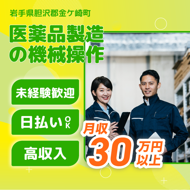給与詳細 月収例 300,000円 時給例 1,650円 勤務地 岩手県胆沢郡金ケ崎町 仕事内容 【業務内容】