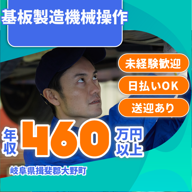 給与詳細 年収例 4,800,000円 月収例 400,000円 勤務地 岐阜県揖斐郡大野町 仕事内容 【業務内容】電子基板製造機械のオペレーター業務