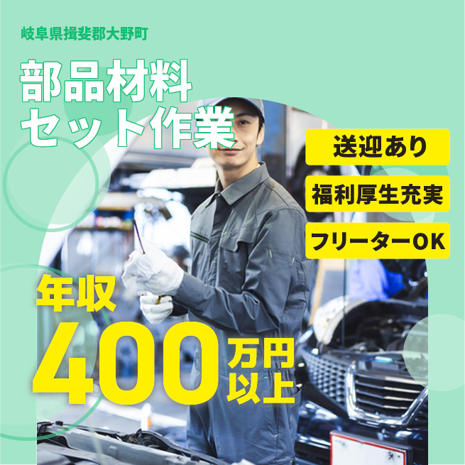 給与詳細 年収例 4,200,000円 月収例 350,000円 勤務地 岐阜県揖斐郡大野町 仕事内容 【業務内容】手のひらサイズ部品の製造補助業務