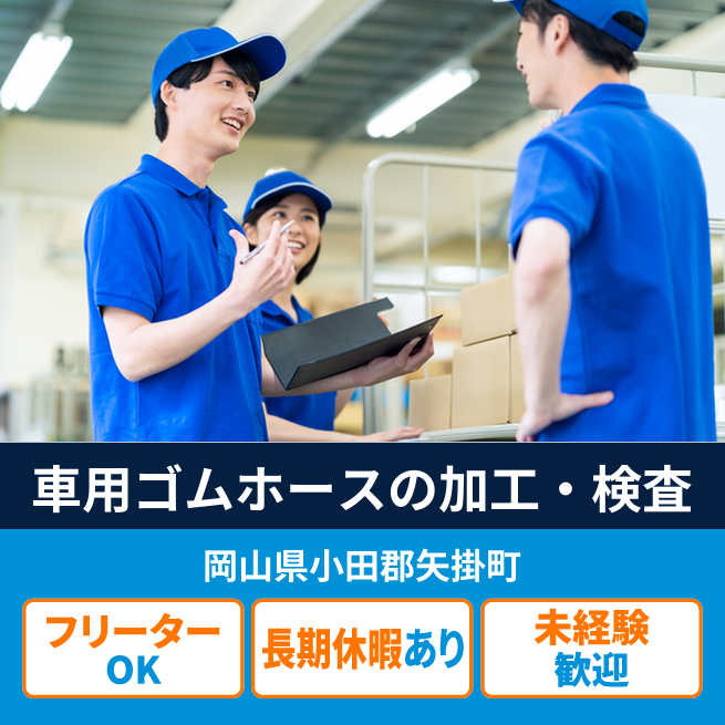 給与詳細 月収例 270,000円 日給例 11,200円 勤務地 岡山県小田郡矢掛町 仕事内容 【30cmのゴム加工】