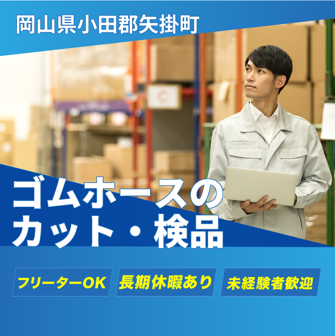 給与詳細 月収例 240,000円 日給例 10,000円 勤務地 岡山県小田郡矢掛町 仕事内容 【軽いゴムの加工・検品】