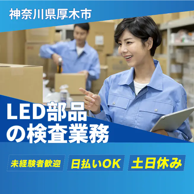 ◆日払い・仮払いOK(アプリでカンタン申請!) 交通費 支給あり 応募の流れ 本ページ内<応募する>ボタンより、必要項目をご入力の上、ご応募ください。 勤務地 【勤務地】神奈川県厚木市恩名 勤務時間 【勤務地】8:30~17:00(休憩45分)