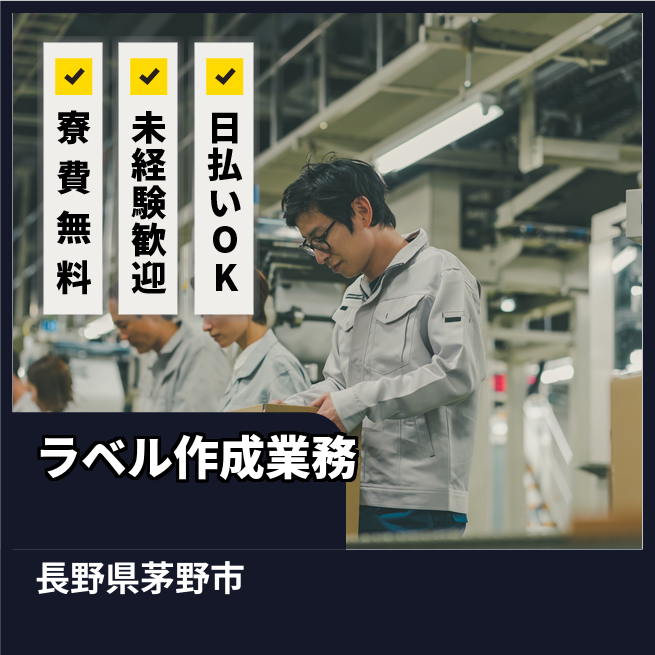 給与詳細 月収例 230,000円 日給例 10,400円 勤務地 長野県茅野市 仕事内容 【業務内容】電子部品のラベル作成と出荷準備
