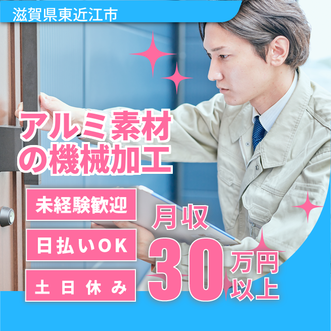 給与詳細 月収例 320,000円 日給例 12,000円 勤務地 滋賀県東近江市 仕事内容 【アルミの機械加工】