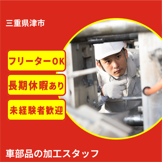 ◆日払い・仮払いOK(アプリでカンタン申請!) 交通費 支給あり 応募の流れ 本ページ内<応募する>ボタンより、必要項目をご入力の上、ご応募ください。 勤務地 【勤務地】三重県津市河芸町東千里 勤務時間 【勤務地】8:00~17:00(休憩55分+小休憩10分×2回)