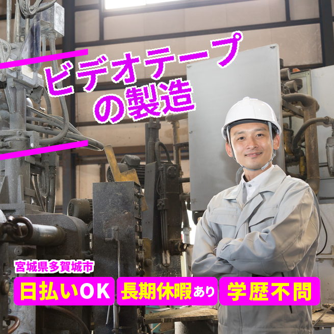 給与詳細 月収例 270,000円 時給例 1,200円 勤務地 宮城県多賀城市 仕事内容 【ビデオテープの製造】