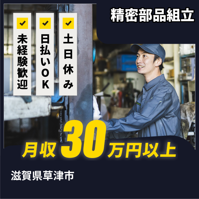 給与詳細 月収例 310,000円 日給例 10,000円 勤務地 滋賀県草津市 仕事内容 【業務内容】