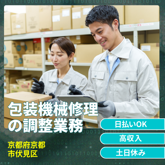 給与詳細 月収例 250,000円 日給例 11,200円 勤務地 京都府京都市伏見区 仕事内容 【業務内容】