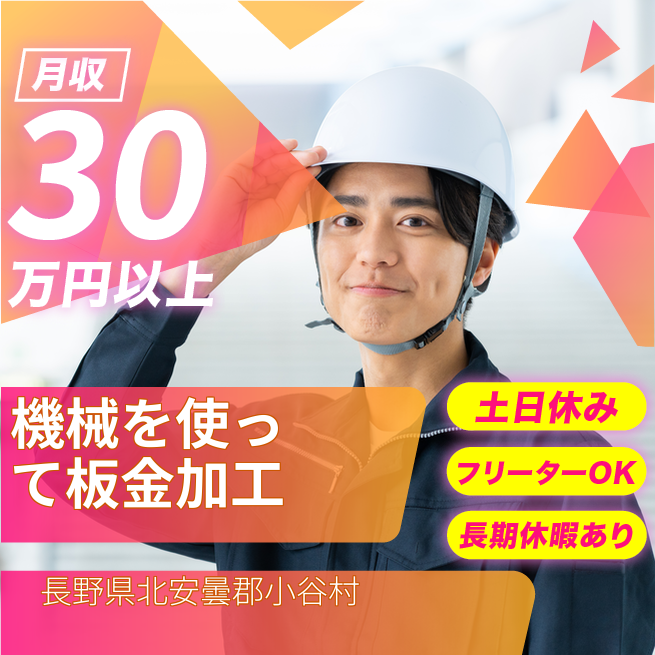 給与詳細 月収例 320,000円 日給例 11,920円 勤務地 長野県北安曇郡小谷村 仕事内容 【機械を使って板金加工】