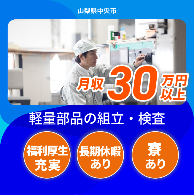給与詳細 月収例 320,000円 日給例 12,400円 勤務地 山梨県中央市 仕事内容 【業務内容】