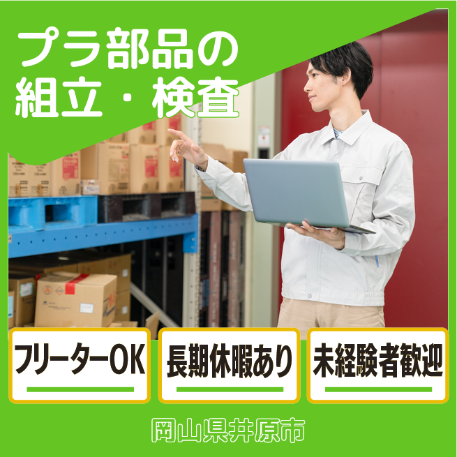 給与詳細 月収例 230,000円 時給例 1,200円 勤務地 岡山県井原市 仕事内容 【プラスチック部品の組立・検査】