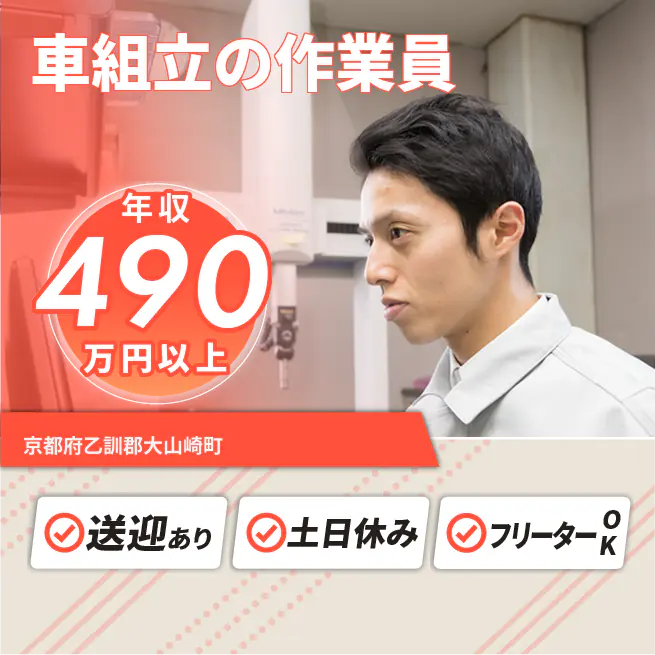 ※シフト配属後10シフト適用(約2ヶ月半/延長の可能性あり) 交通費 支給あり 応募の流れ 本ページ内<応募する>ボタンより、必要項目をご入力の上、ご応募ください。 勤務地 【勤務地】京都府乙訓郡大山崎町- 勤務時間 【勤務地】8:15~17:10(休憩60分+小休憩10分)