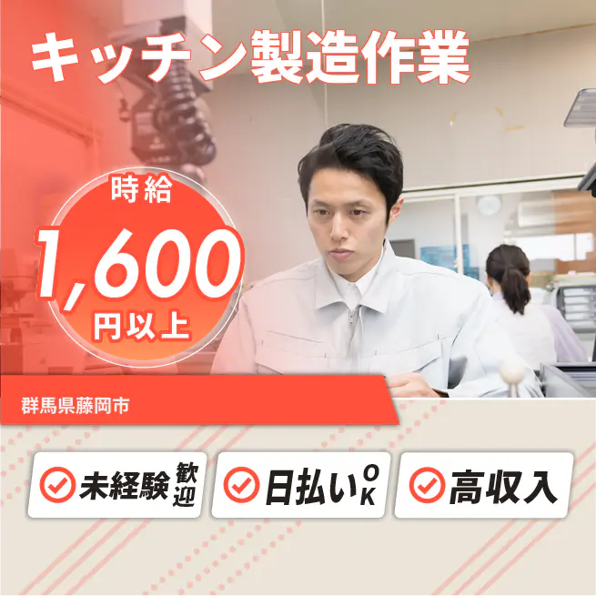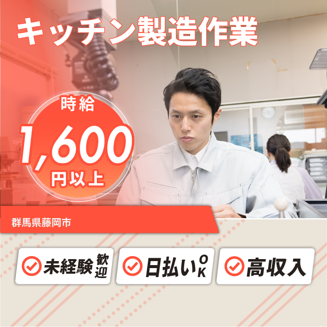 給与詳細 月収例 270,000円 時給例 1,610円 勤務地 群馬県藤岡市 仕事内容 【業務内容】