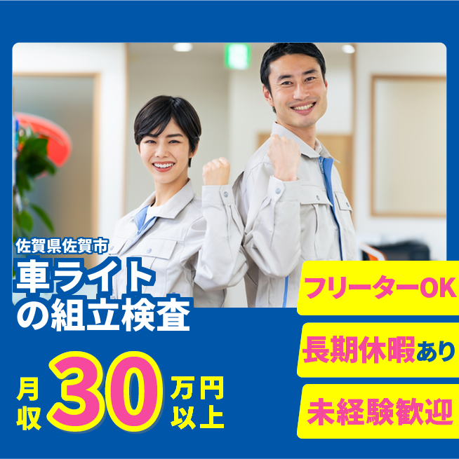 給与詳細 年収例 4,200,000円 月収例 350,000円 勤務地 佐賀県佐賀市 仕事内容 【ヘッドライトの組立・検査・運搬】