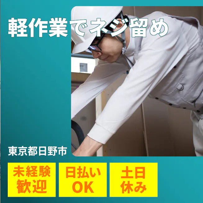 給与詳細 月収例 230,000円 日給例 10,800円 勤務地 東京都日野市 仕事内容 【業務内容】パソコン製造工場でのネジ留めや軽作業