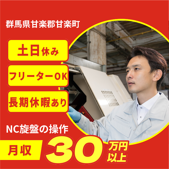 給与詳細 年収例 4,080,000円 月収例 340,000円 勤務地 群馬県甘楽郡甘楽町 仕事内容 【業務内容】 自動車用金属部品の加工と品質検査