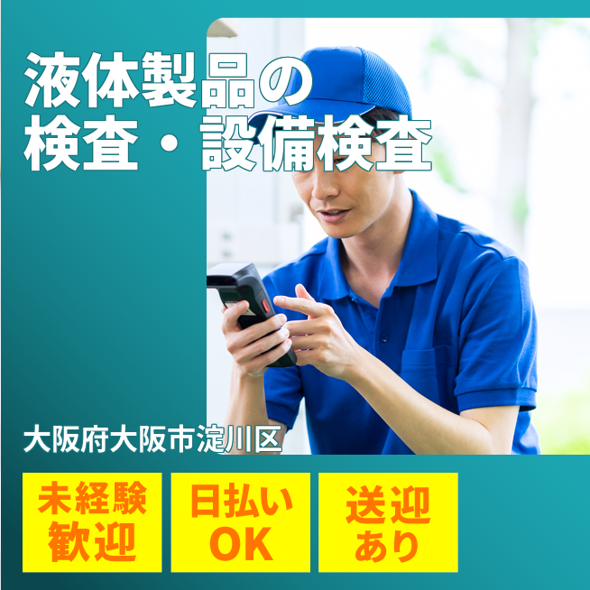 給与詳細 月収例 240,000円 日給例 11,440円 勤務地 大阪府大阪市淀川区 仕事内容 【液体製品の検査・設備チェック】