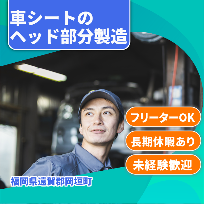 給与詳細 月収例 280,000円 日給例 10,000円 勤務地 福岡県遠賀郡岡垣町 仕事内容 【車シートのヘッド部分製造】