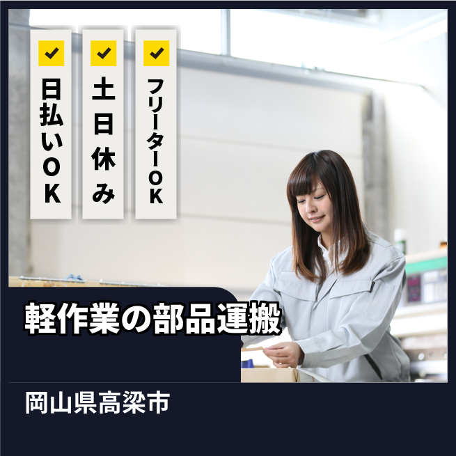 ・受動喫煙対策あり、詳細は面接時にお伝えします。 公開日 2025年10月01日 【小型部品の部品セットや運搬】