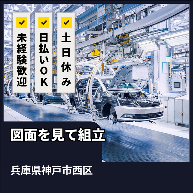 ◆日払い・仮払いOK(アプリでカンタン申請!) 交通費 支給あり 応募の流れ 本ページ内<応募する>ボタンより、必要項目をご入力の上、ご応募ください。 勤務地 【勤務地】兵庫県神戸市西区高塚台 勤務時間 【勤務地】8:30~17:15(休憩60分+小休憩7分+8分)