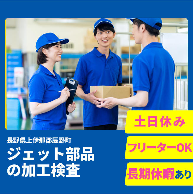 給与詳細 月収例 290,000円 日給例 11,440円 勤務地 長野県上伊那郡辰野町 仕事内容 【ジェット機のエンジン部品加工・検査】