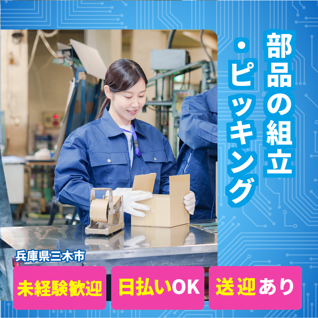 ・受動喫煙対策あり、詳細は面接時にお伝えします。 公開日 2025年10月01日 【部品の組立・ピッキング】