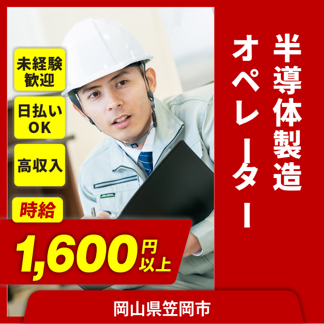 給与詳細 月収例 270,000円 時給例 1,688円 勤務地 岡山県笠岡市 仕事内容 【業務内容】