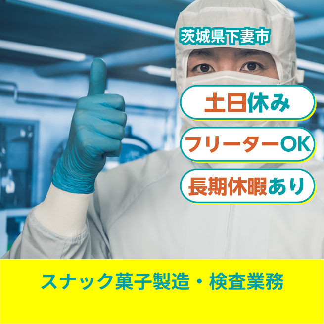 給与詳細 月収例 280,000円 日給例 11,200円 勤務地 茨城県下妻市 仕事内容 【業務内容】スナック菓子の製造と包装作業を担当します。