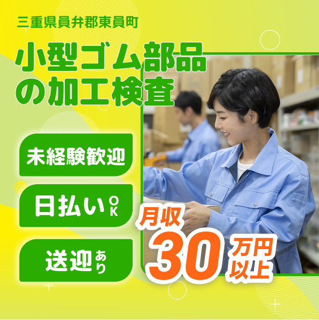 ※通常62,000円の寮費が就業期間中無料! 【小型ゴム部品の加工・検査】