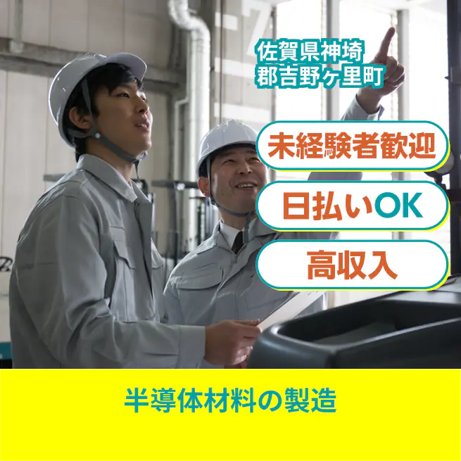 ◆日払い・仮払いOK(アプリでカンタン申請!) 交通費 支給あり 応募の流れ 本ページ内<応募する>ボタンより、必要項目をご入力の上、ご応募ください。 勤務地 【勤務地】佐賀県神埼郡吉野ヶ里町吉田 勤務時間 【勤務地】8:15~17:00(休憩60分+小休憩5分×2回)