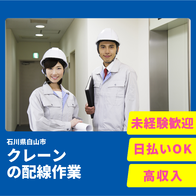 給与詳細 月収例 250,000円 日給例 12,080円 勤務地 石川県白山市 仕事内容 【業務内容】